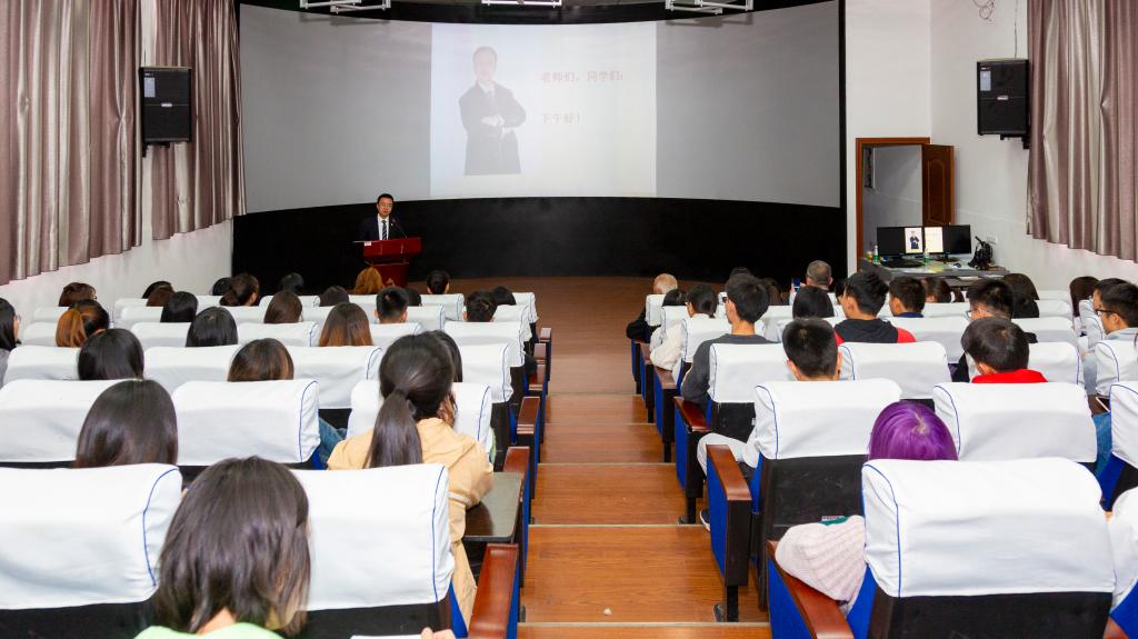 蒋文武结合自身立志成才的故事,围绕什么是价值观和核心价值观,新时代为什么更需要弘扬社会主义核心价值观,社会主义核心价值观的培育践行与弘扬三个方面,阐述大学生践行和弘扬社会主义核心价值观的自觉性、必要性、时代性,增强大学生践行和弘扬社会主义核心价值观的使命感,激励大学生做践行弘扬的标杆,做传播正能量的先行者。