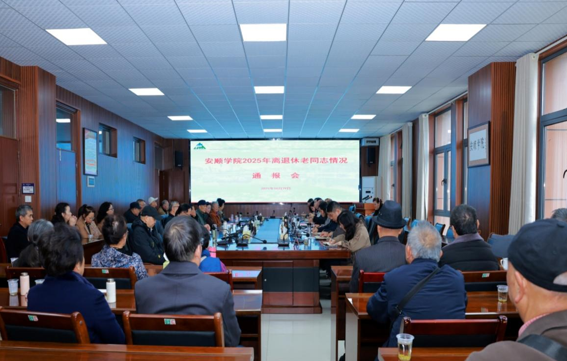 2025年10月29日上午,安顺学院举行2025年离退休老同志情况通报会暨重阳节活动,向老同志们通报学校一年来的发展情况,与老同志们共同庆祝重阳佳节。安顺学院党委书记程绪权、校长曾丽、党委副书记李琳出席会议,学校党委组织部、党委宣传部、党政办、人事处、计财处、后勤处、离退休处等部门领导及离退休老同志代表60余人参加会议。会议由李琳主持。