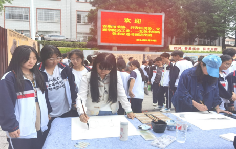 为关心青少年健康成长,进一步发挥广大"五老"在教育、引导、关爱、保护青少年方面的独特优势和重要作用,6月25日,安顺学院关工委、安顺市美术家协会、开发区美术家协会在西秀区旧州中学主办了“书画薪传助申特,培根铸魂育新人”书画薪传活动。安顺学院关工委副主任潘发义、安顺学院离退休处处长史贤琴、艺术学院副院长谢朝玺等参加了活动。